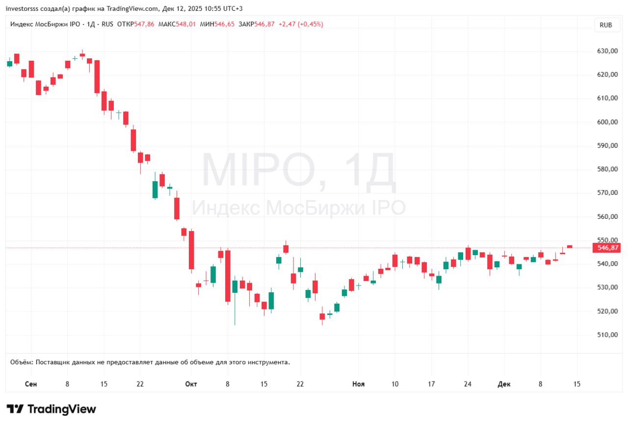 📉 Индекс МосБиржи IPO (#MIPO, 22 эмитента) с начала года отрицательно прибавил 15,6%, с дивами -12,3%. Можно найти массу таблиц “кто из компаний в плюсе”. Не будем занимать место, ограничимся констатацией: “Единицы”.