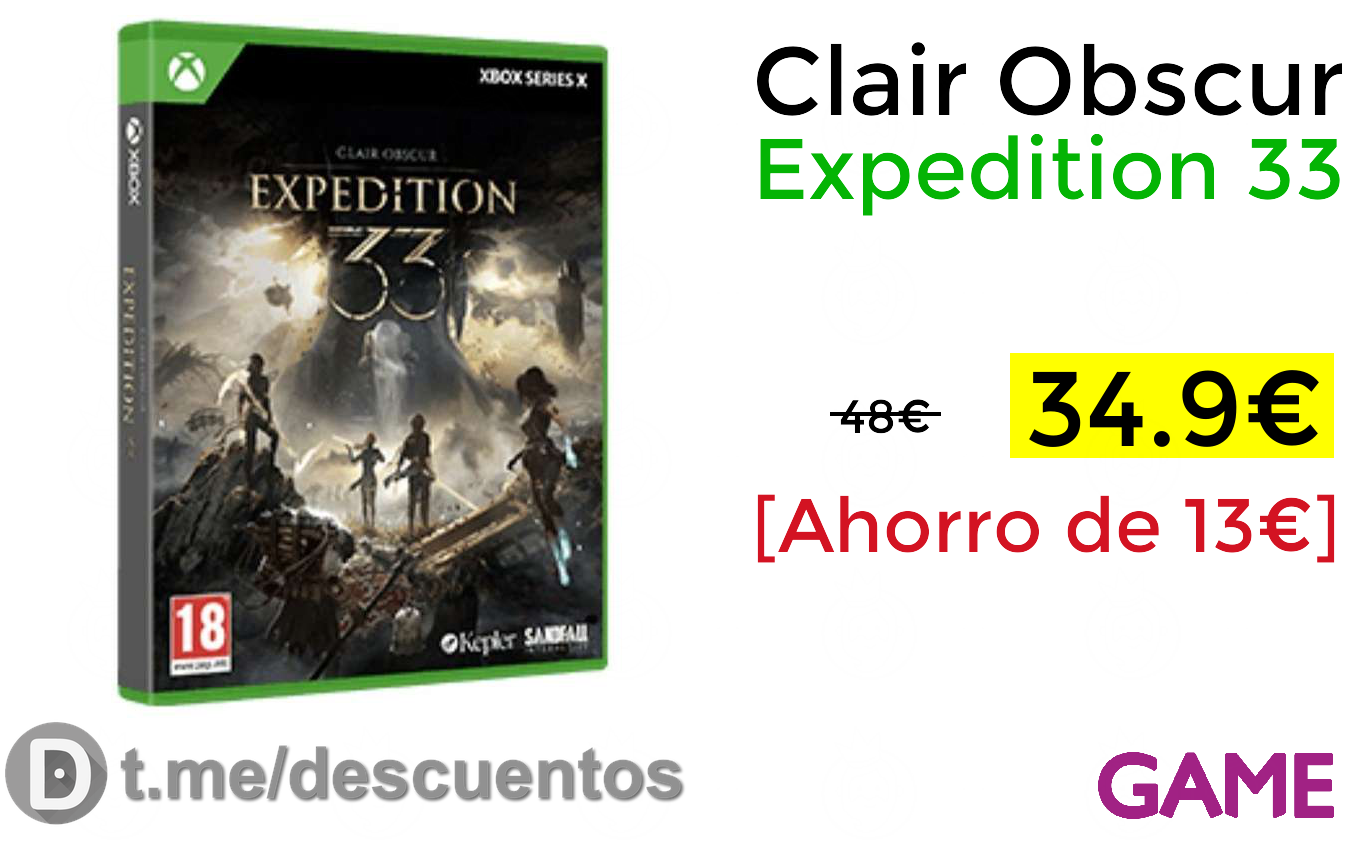 ✨Buen precio y disponible tanto para XBOX como para PS5 el juego Clair Obscur: Expedition 33 en el que exploraremos un mundo de fantasía inspirado por la belle époque francesa mientras nos enfrentamos a enemigos devastadores.