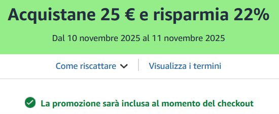 ℹ️ Acquista minimo 25€ di prodotti di qualsiasi categoria (della pagina linkata a seguire) e ricevi il ""% di sconto direttamente al checkout!