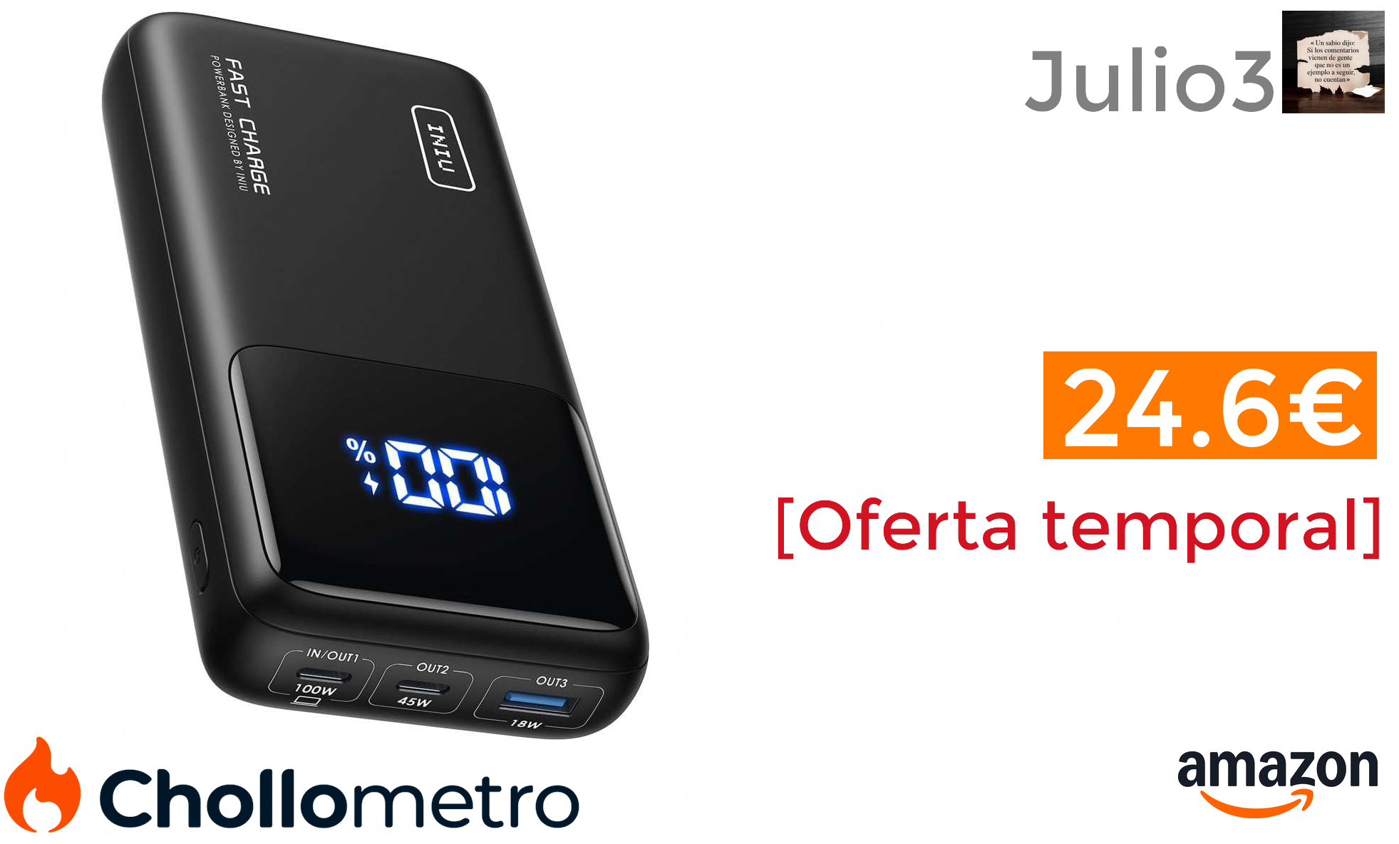 🔹Power bank INIU 25000mAh 100W carga rápida solo 24.63€❗️🔥