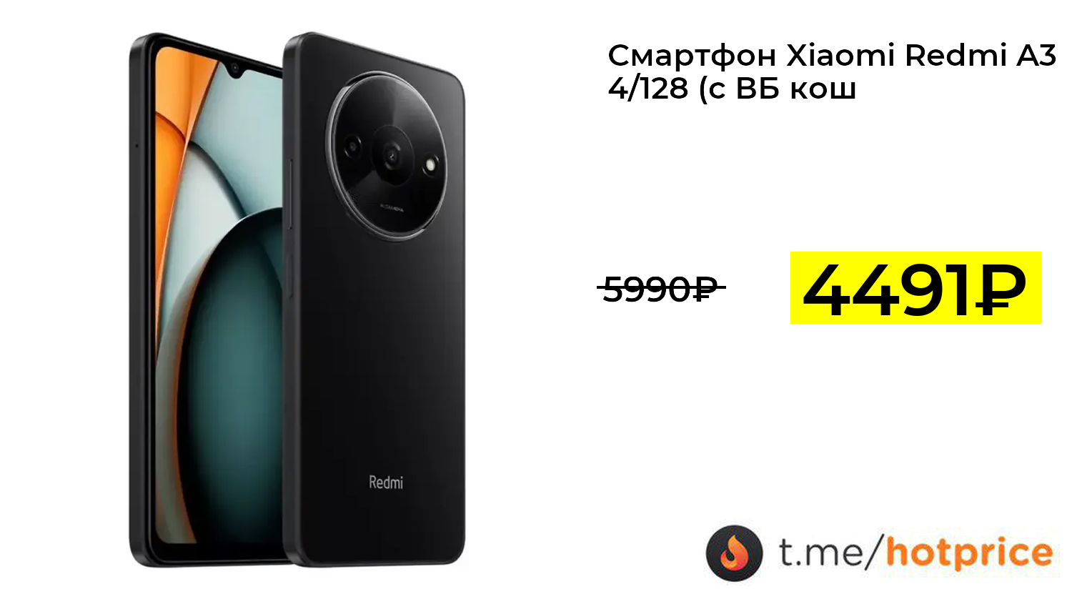 🔹 Смартфон Xiaomi Redmi A3 4/128 (с ВБ кошельком) за 4491₽ ❗️ (везде: 5990+₽)
