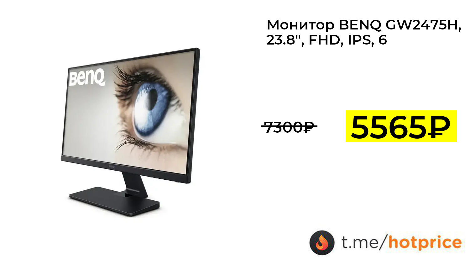 🔹 Монитор BENQ GW2475H, 23.8", FHD, IPS, 60Гц (ВБ-кошелек + подписка и 500₽ за отзыв) за 5565₽ ❗️ (везде: 7300+₽)