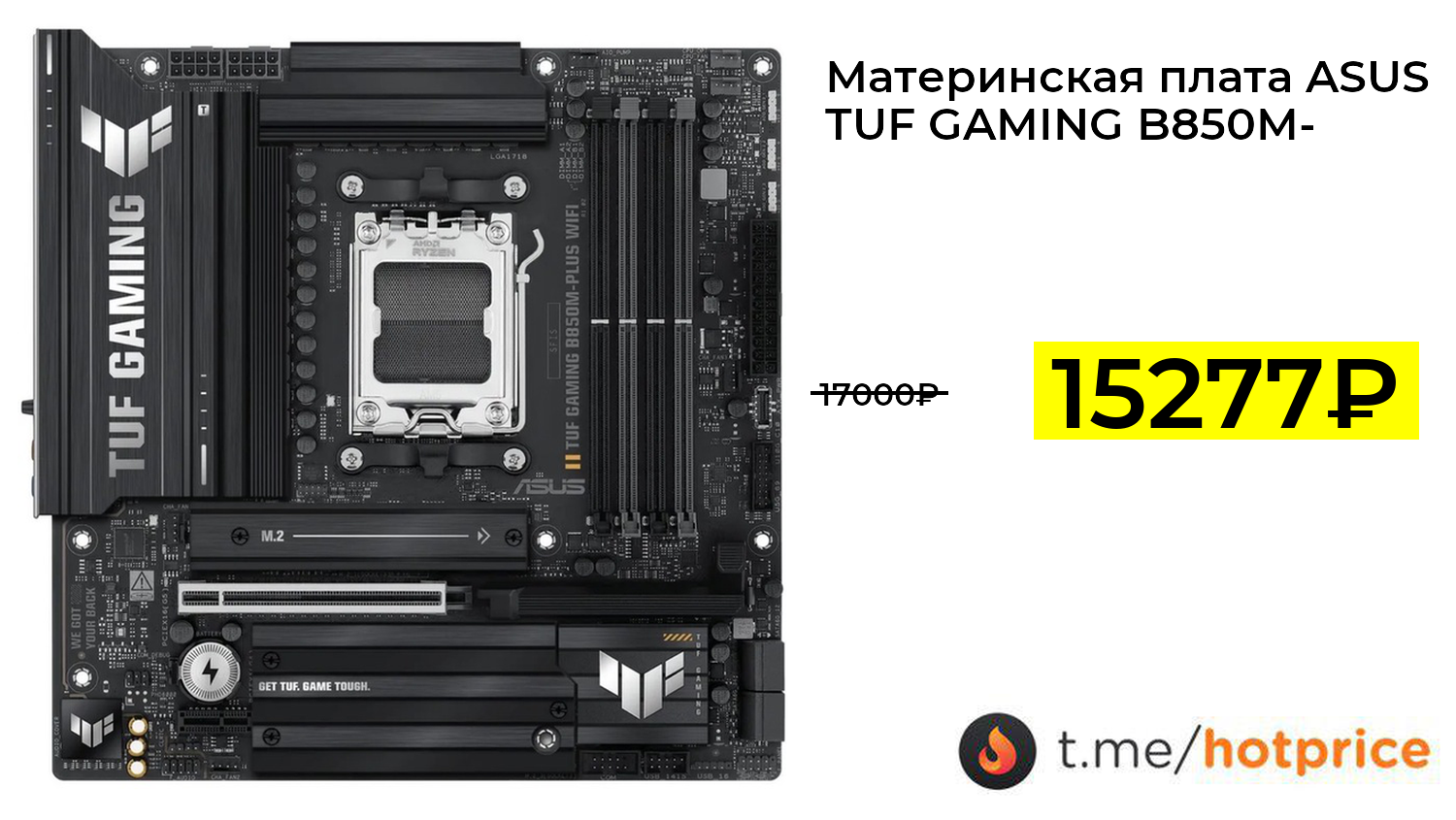 🔹 Материнская плата ASUS TUF GAMING B850M-PLUS WIFI AM5 AMD B850 mAh (с макс. кошельком ВБ) за 15277₽ ❗️ (везде: 17000+₽)