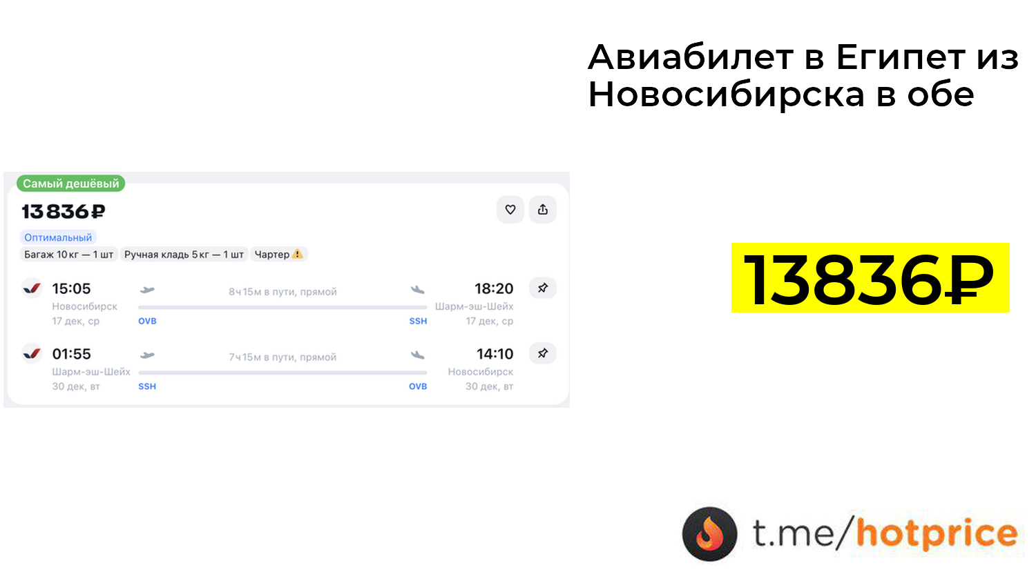 🔹 Авиабилет в Египет из Новосибирска в обе стороны за 13836₽ ❗️