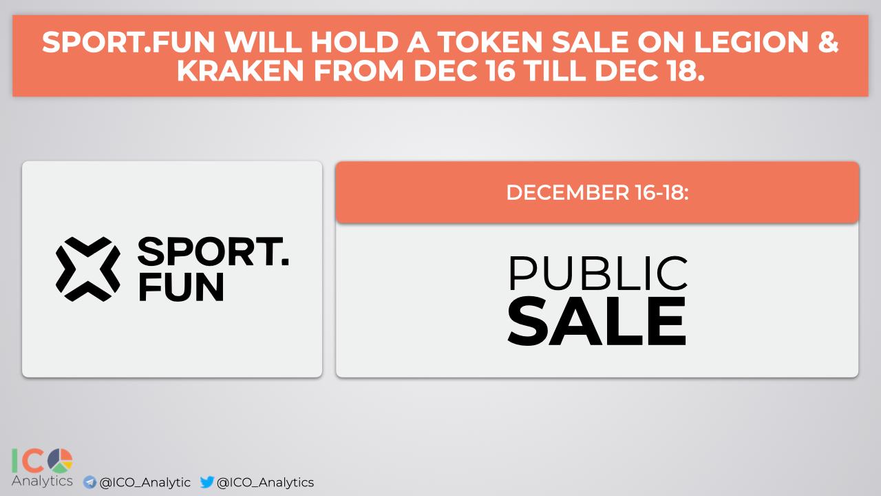 SportFun (FUN) will hold a token sale on Legion & Kraken from December 16 till December 18. $3M to be raised at $60M FDV. Vesting: 50% at TGE and 50% linear over 6 months. Min/max contribution: $100/100k. SportFun is building a sports entertainment platform.