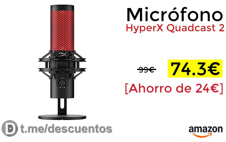 🔹Micrófono HyperX Quadcast 2 solo 74.3€❗️⚡️ (PVP: +99€)