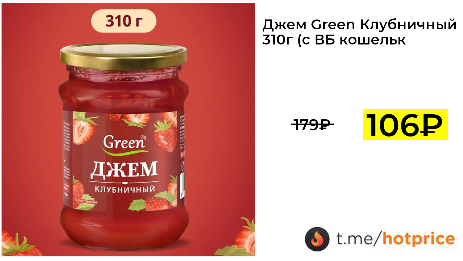 🔹 Джем Green Клубничный 310г (с ВБ кошельком) за 106₽ ❗️ (везде: 179+₽)