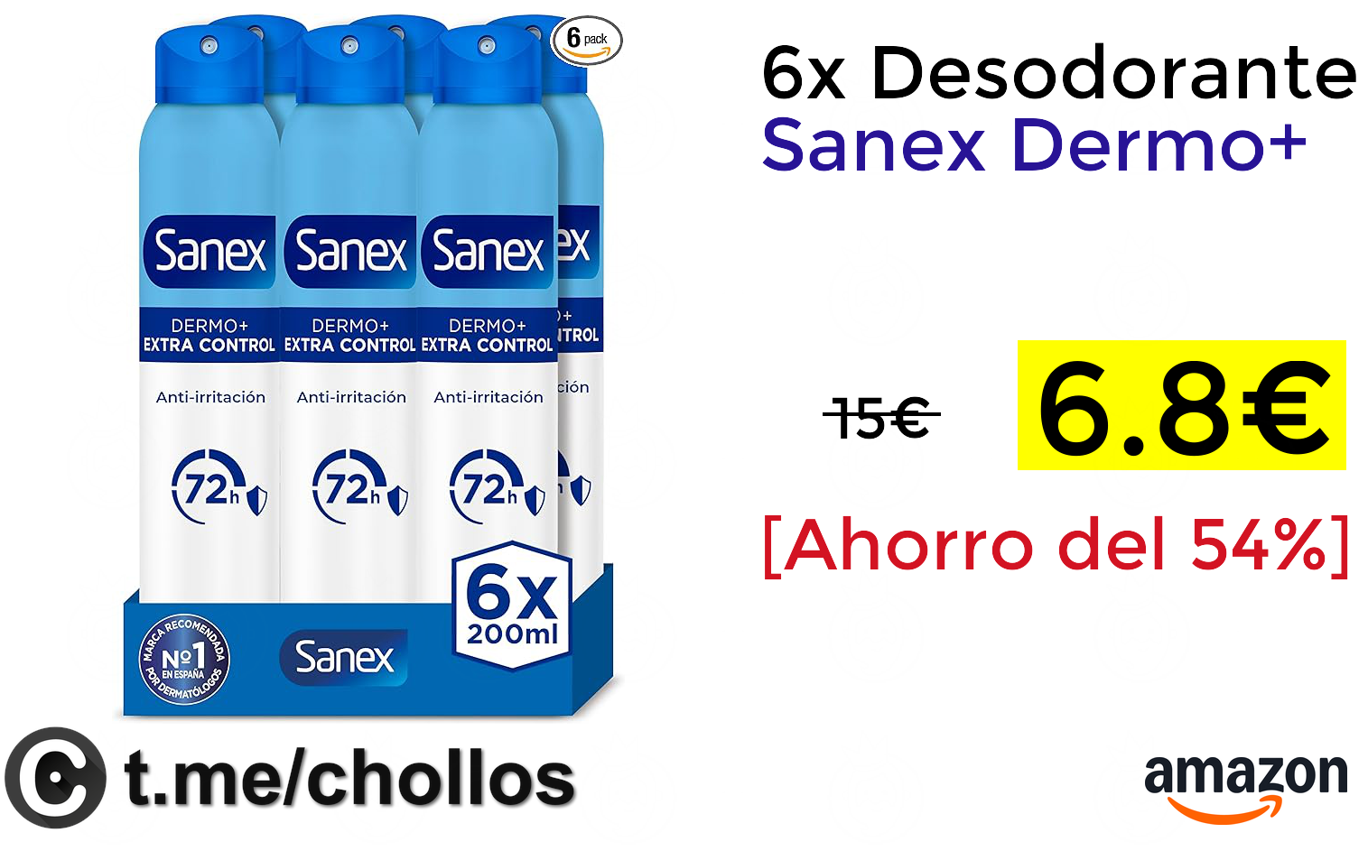 🔹6x Desodorante Sanex Dermo+ solo 6.8€❗️💥 (PVP: +15€)