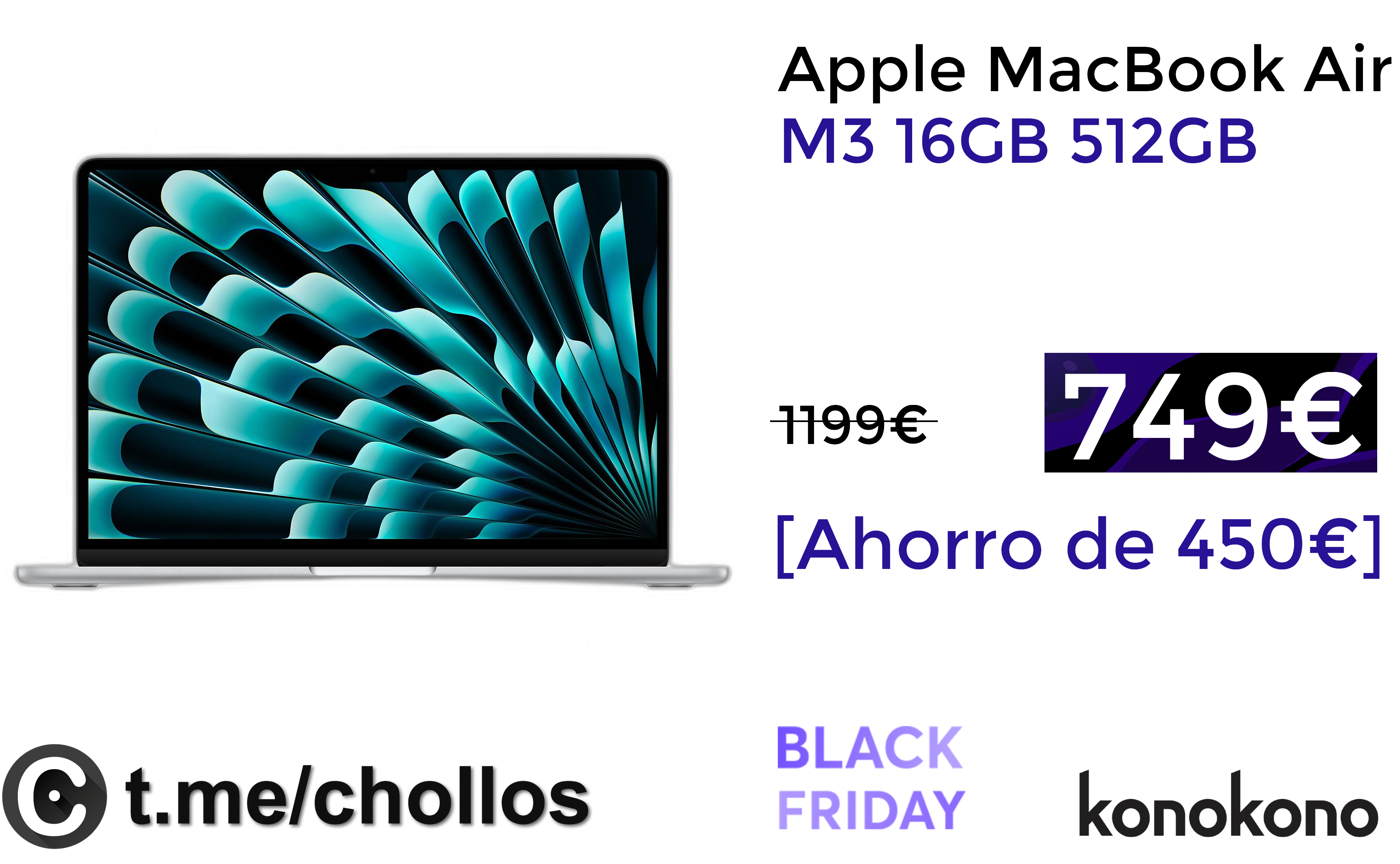 🔹Apple MacBook Air M3 16GB 512GB solo 749€❗️✔️ (PVP: +1199€)