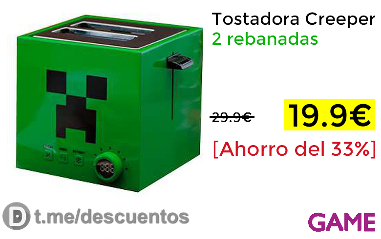 🔹Tostadora Creeper 2 rebanadas solo 19.9€❗️⚡️ (PVP: +29.9€)