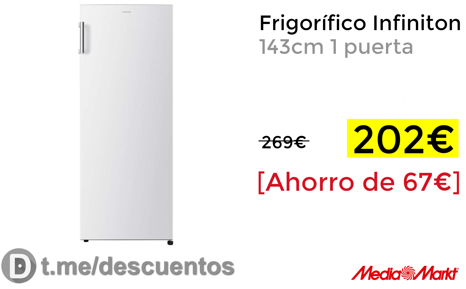 🔹Frigorífico Infiniton 143cm 1 puerta solo 202€❗️⚡️ (PVP: +269€)