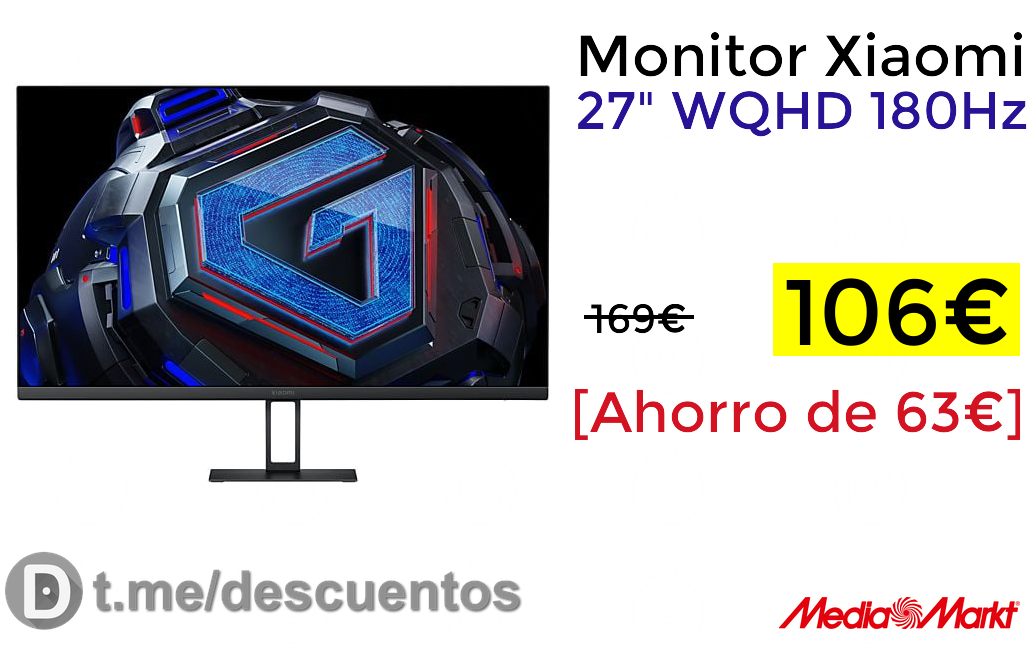 🔹Monitor Xiaomi 27" WQHD 180Hz solo 106€❗️⚡️ (PVP: +169€)