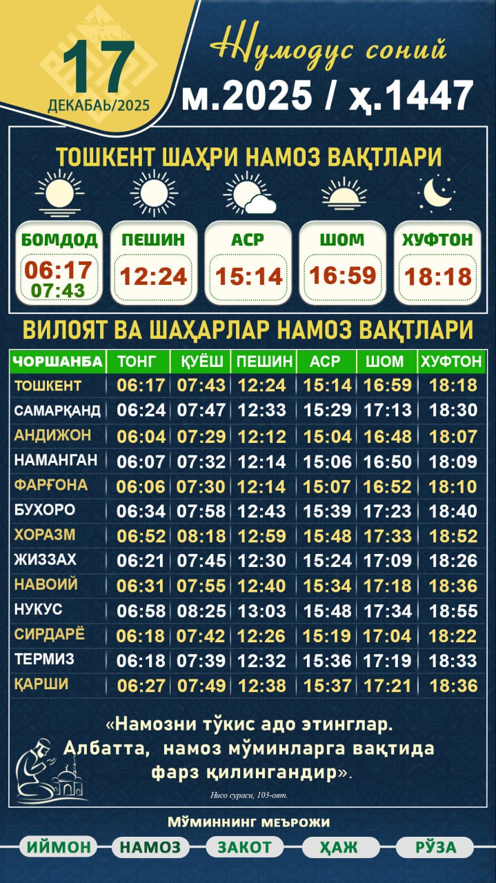 Repost from Namoz Vaqtlari | Nomoz | Taqvim