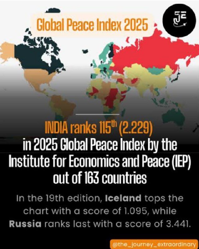 २०२५ च्या जागतिक शांतता निर्देशांकात (GPI)भारताचा क्रमांक किती आहे?